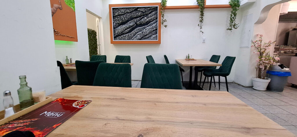 Schon nach kurzer Zeit werden mir Besteck und eine Tüte Fladenbrot serviert. Wenig später bringt mir sogar ein anderer Gast, der vorne auf seine Bestellung wartet, meinen Teller an den Tisch. Man merkt sofort: Hier speist die Nachbarschaft, und man hilft sich untereinander – ein sehr sympathisches Zeichen.